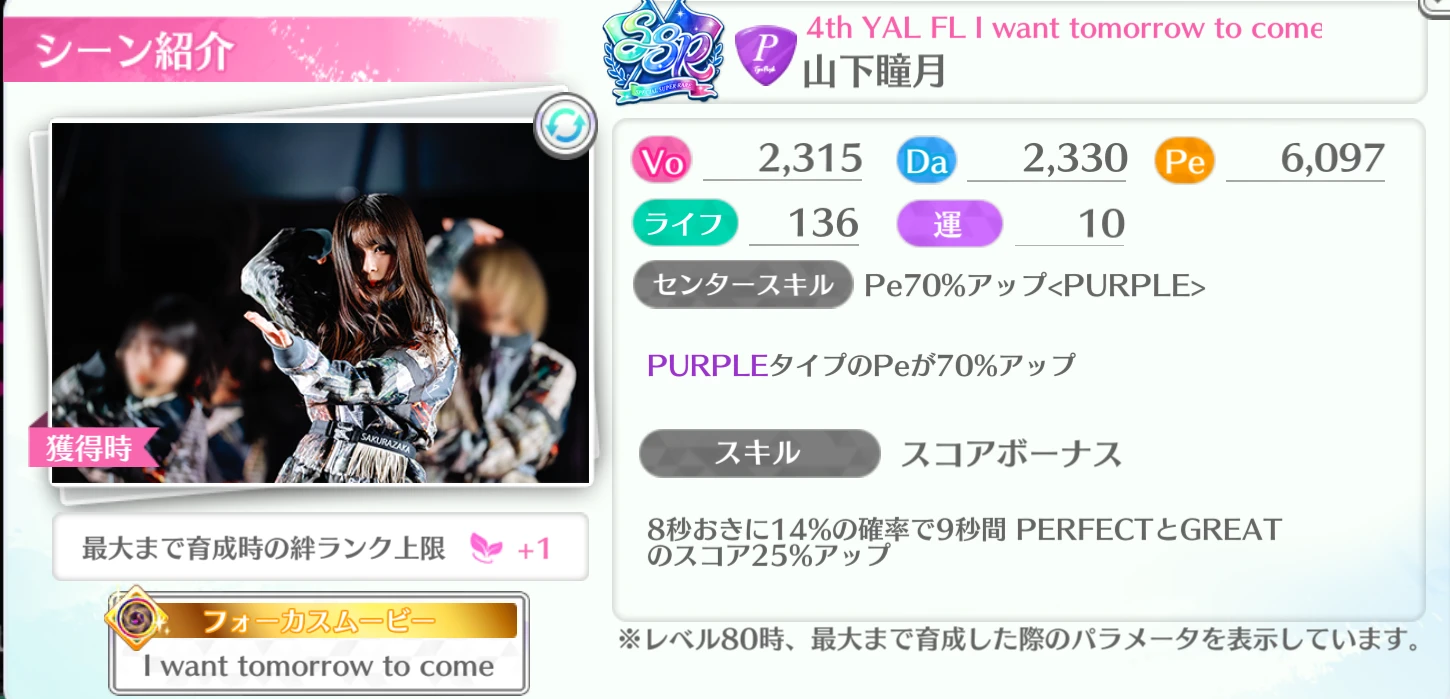 「 山下瞳月 / 4th YAL FL I want tomorrow to come」のおすすめシーンカード