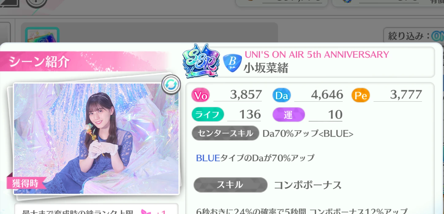 「 小坂菜緒 / UNI'S ON AIR 5th ANNIVERSARY」のおすすめシーンカード