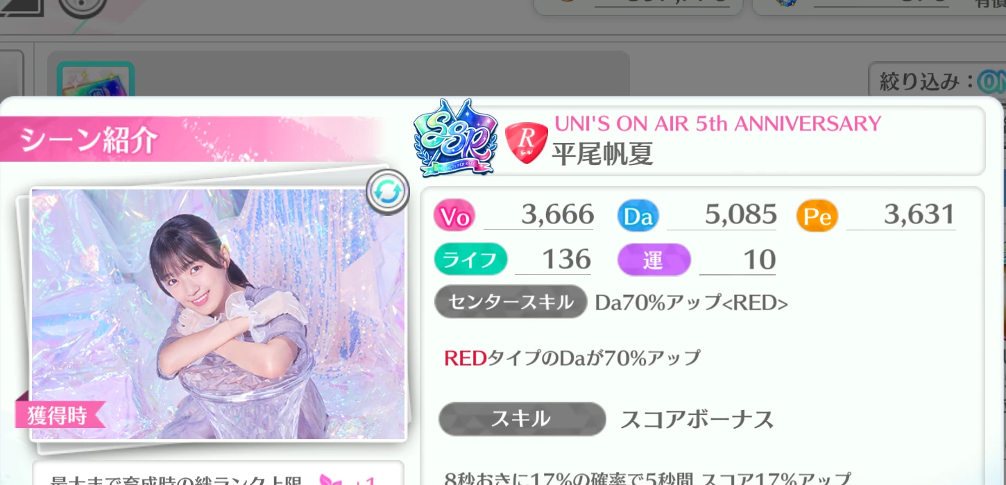 「 平尾帆夏 / UNI'S ON AIR 5th ANNIVERSARY」のおすすめシーンカード