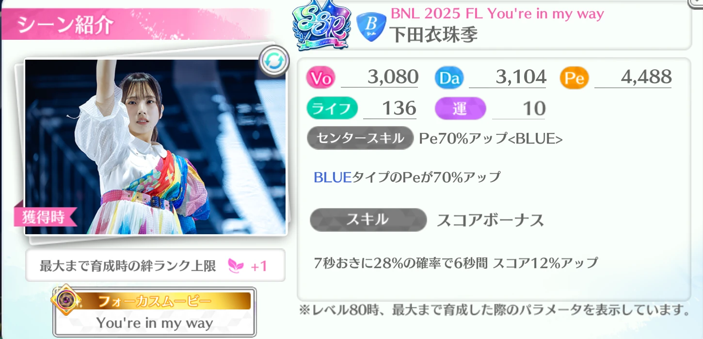「 下田衣珠季 / BNL 2025 FL You're in my way」のおすすめシーンカード