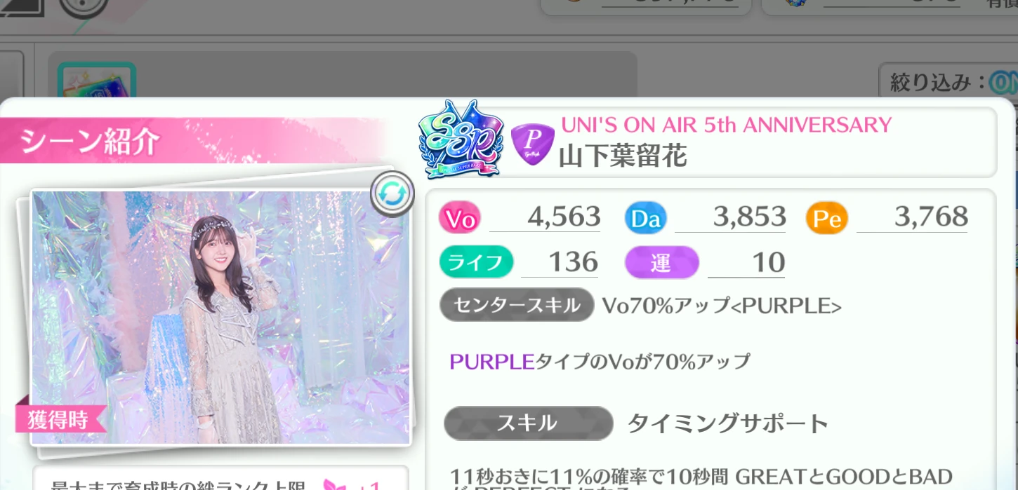 「 山下葉留花 / UNI'S ON AIR 5th ANNIVERSARY」のおすすめシーンカード