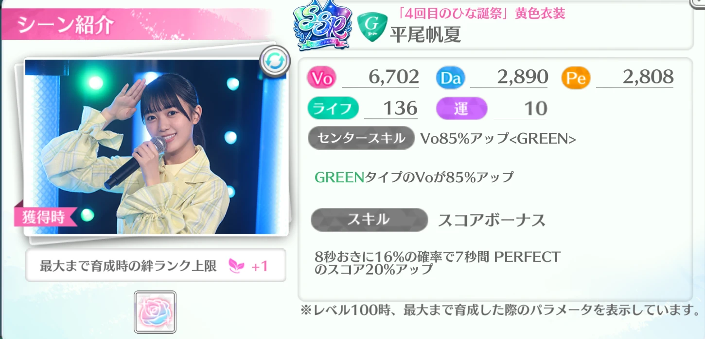 「 平尾帆夏 / 「4回目のひな誕祭」黄色衣装」のおすすめシーンカード
